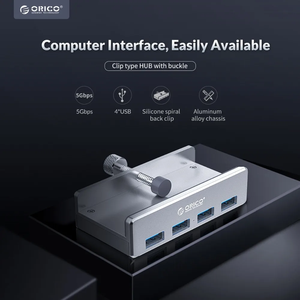 Best . (42% Off) Buy ORICO 4 Ports USB Splitter USB3.0 HUB With USB Power Port Clip type Aluminum 5Gbps For Card Reader PC Computer laptop Price Online.