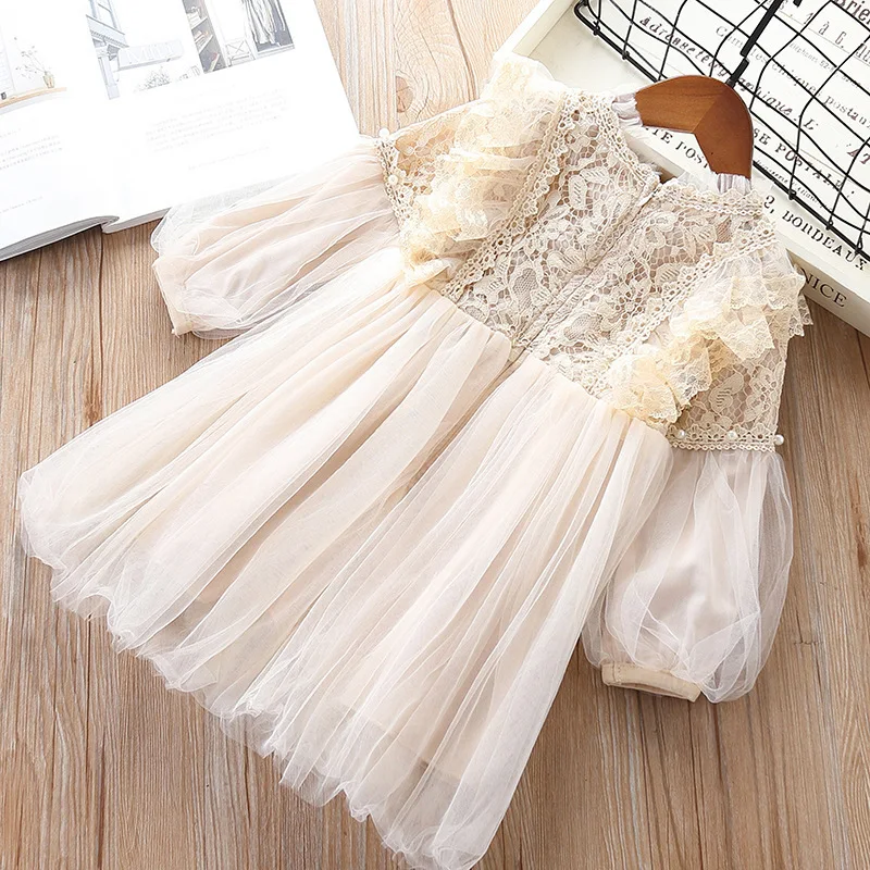 Special Offer Girl Dresses Lantern Sleeve Princess Party Princess 2019 Spring Kids Lace Children Dress With Pearls Purple And White 3 7T Discount 45% Today!