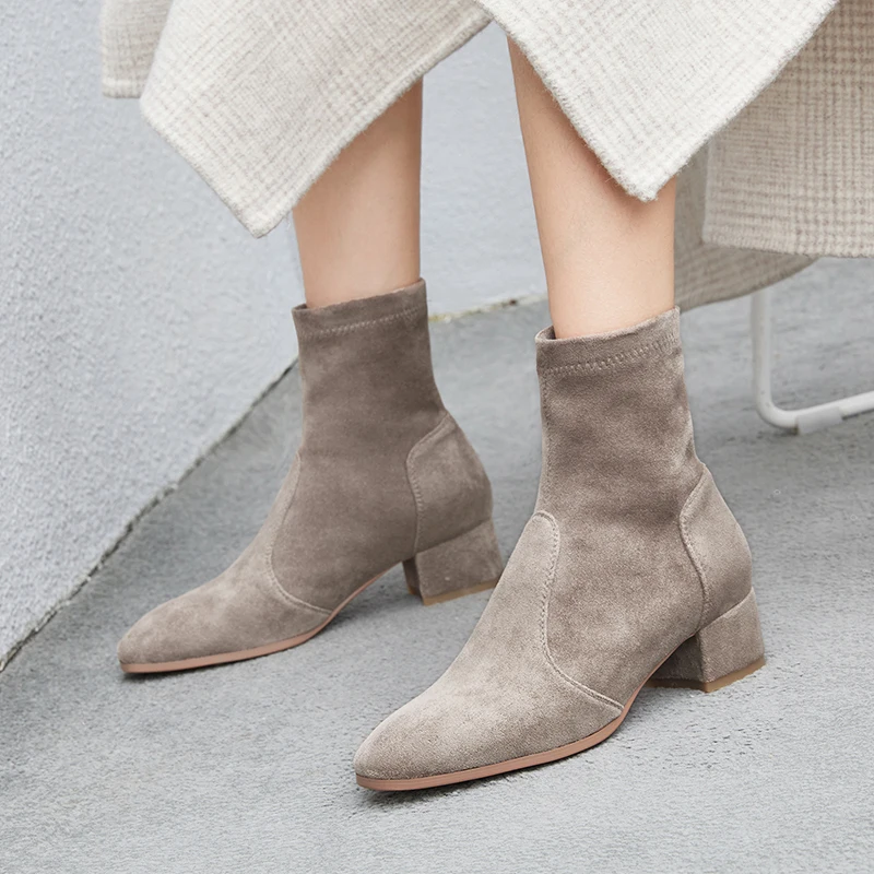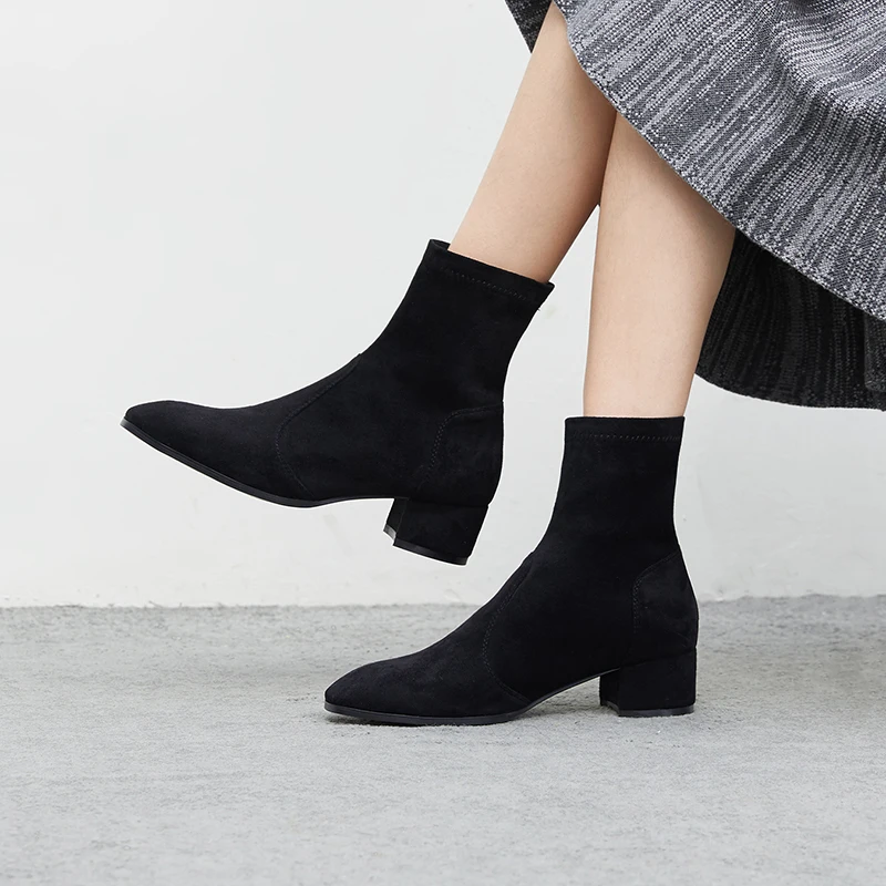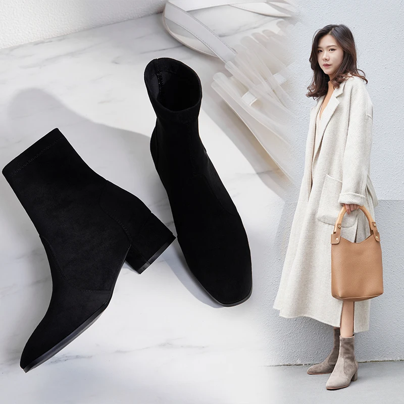 Special Offer Vangull Women elastic fabric FLOCK Boots suede short boots fashion Handmade Classic pointed toe Sheepskin insole all match Discount 49% Today!