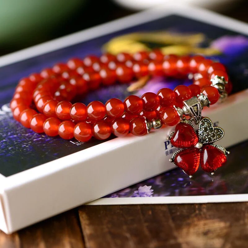 Special Offer JoursNeige Red Crystal Bracelets Beads 6mm Lucky Tibetan Silver Grass Pendant for Women Crystal Bracelet Multilayer Jewelry Discount 5% Today!