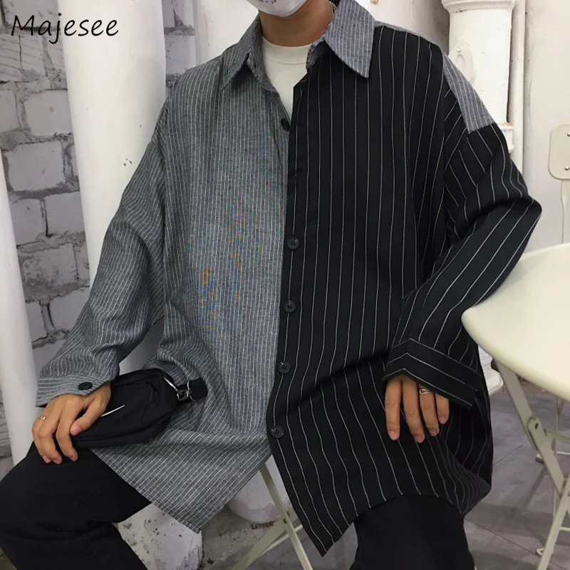 Special Offer Shirts Men Patchwork Leisure Loose Oversize Simple Korean Style All match Retro Harajuku Shirt Mens Long Sleeve Soft Daily Chic Discount 5% Today!