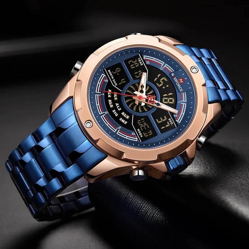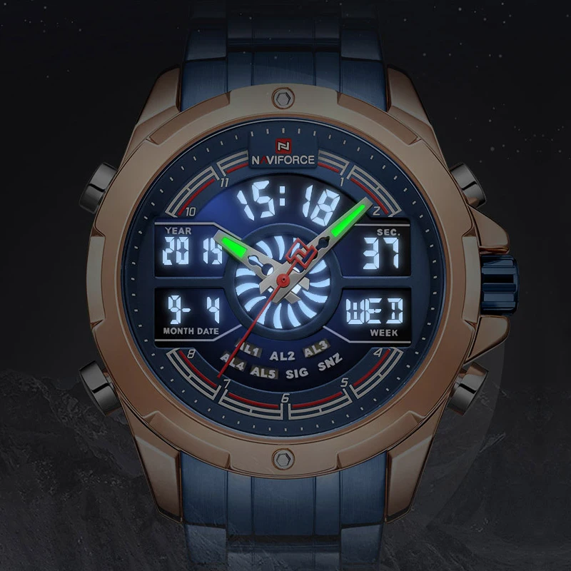 Special Offer New NAVIFORCE Men Watch Full Steel Quartz Men s Wrist Watches Military Dual Display Waterproof Sports Digital Male Clock for Men Discount 61% Today!