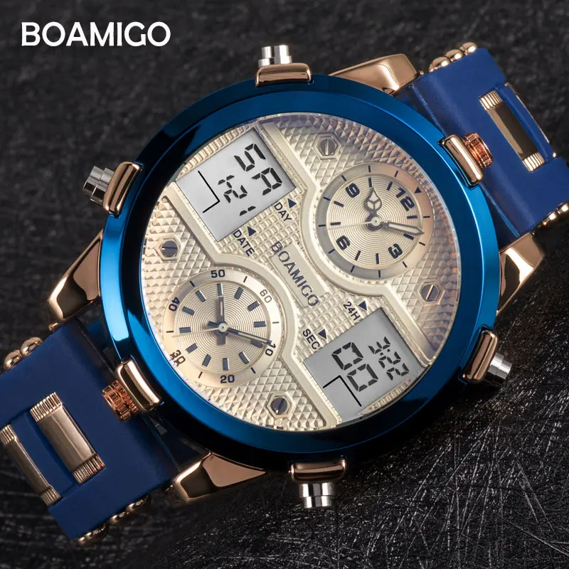 Best . (80% Off) Buy BOAMIGO Mens Watches Top Luxury Brand Men Sports Watches Men s Quartz LED Digital 3 Clock Male Gold Blue Military Wrist Watch Cheap Online.