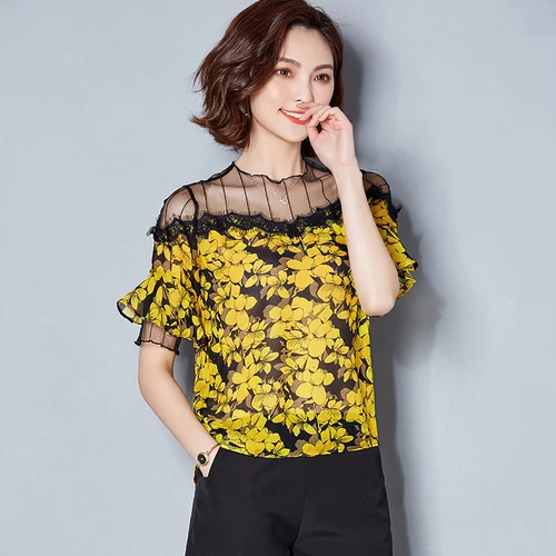 Best . (20% Off) Buy J40718 New Arrival 2018 Summer All Match Lace Patchwork Floral Printed Chiffon Basic Shirt Price Online.