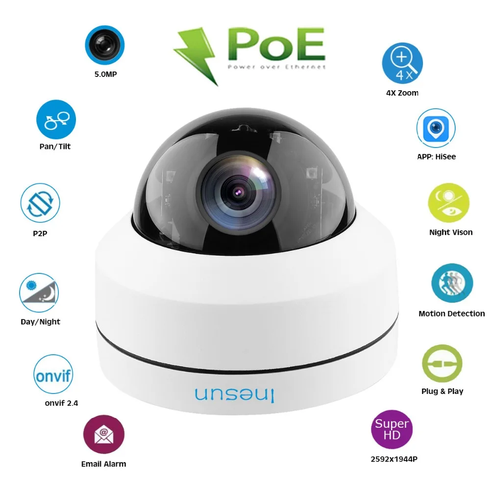 Best . (25% Off) Buy Inesun Outdoor 5MP PoE PTZ Security IP Camera 2592x1944P Super HD 4X Optical Zoom PTZ Dome Camera Vandal Proof With Wall Bracket Price Online.