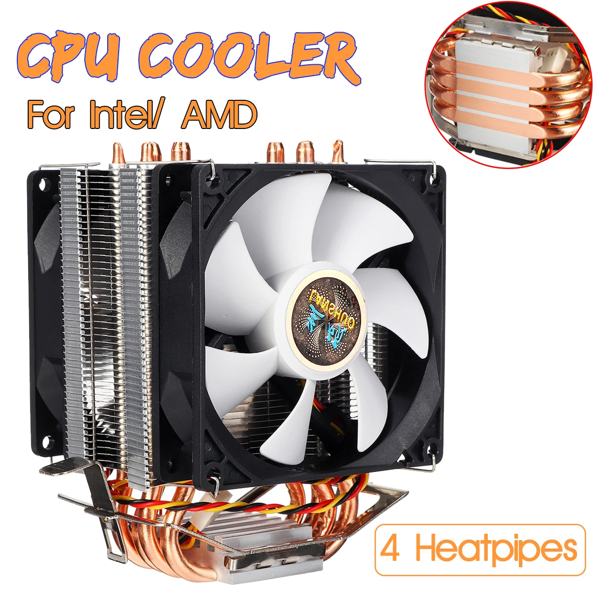 Special Offer 3 Pin 4 Heatpipes CPU Cooler Cooling Fan Radiator Quiet Dual Fan Cooler Heatsink for Intel LGA 1150 1151 1155 1156 1366 775 AMD Discount 30% Today!