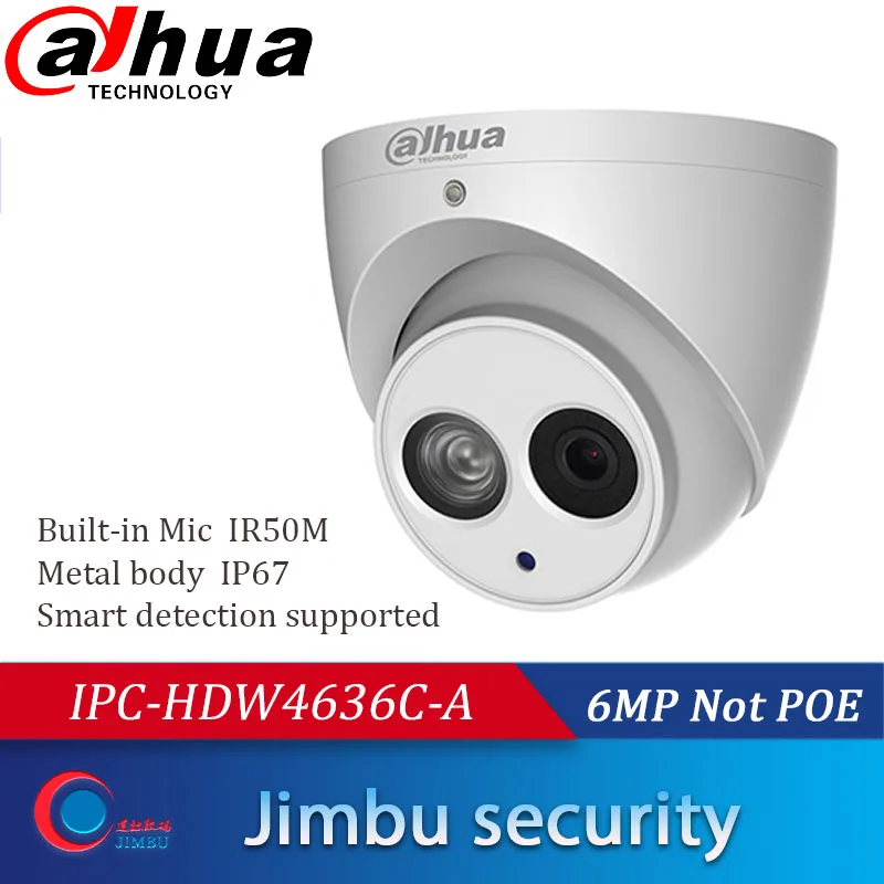 Best . (30% Off) Buy Dahua IPC HDW4636C A 6MP 6Mega Pixel Not POE H.265 Metal casing Built in MIC IR50m IP67 IK10 Dome CCTV camera IP Camera Cheap Online.
