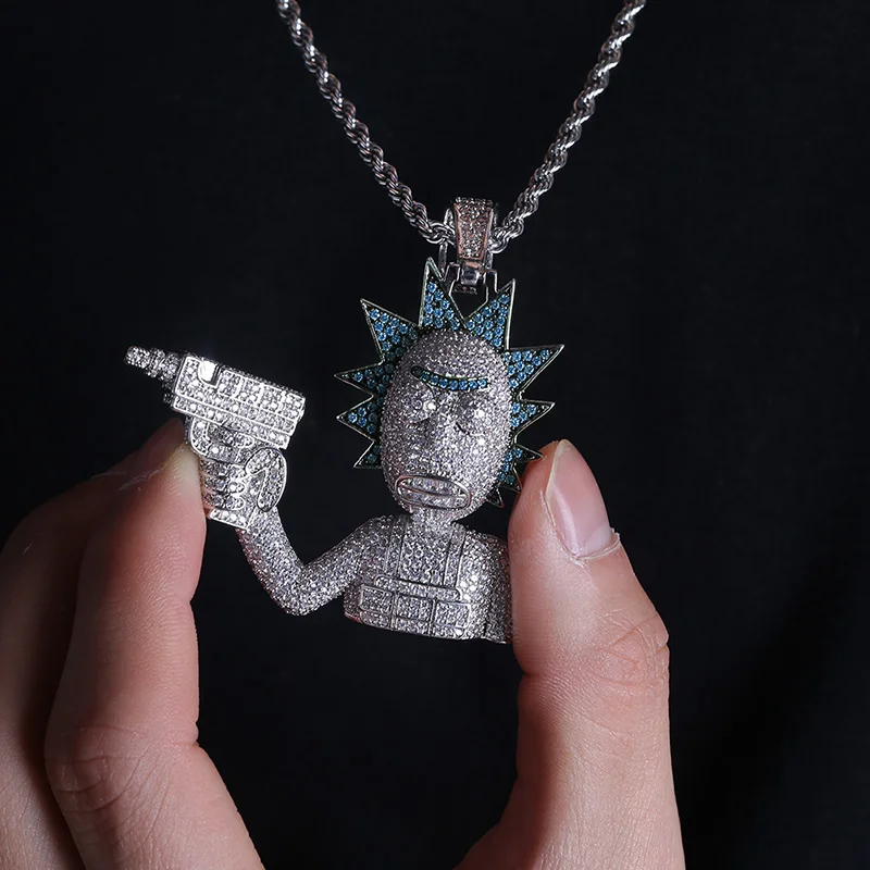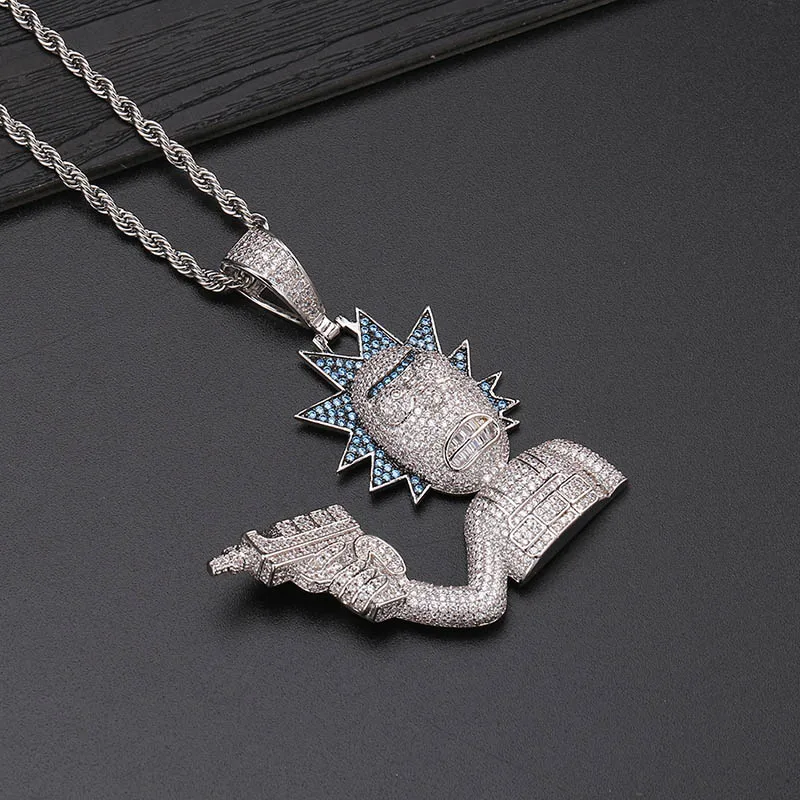 Special Offer Iced Out Rick Morty Pendant Necklace Men Gold Silver Color Chain Necklace With Tennis Chain Personalized Hip Hop Charm Jewelry Discount 30% Today!