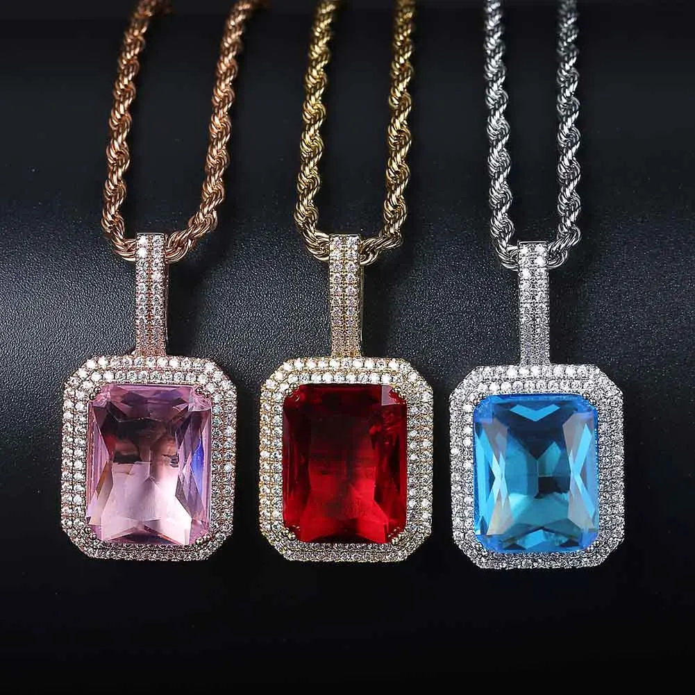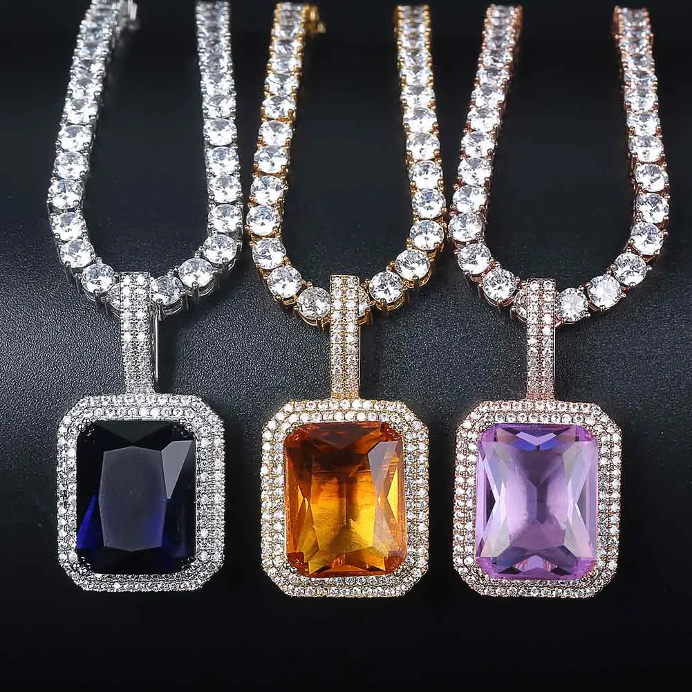 Special Offer TOPGRILLZ ICED OUT Gem Stones Solitaire Pendant Necklace Infinity Stones Solid Back With Tennis Chain Hip Hop Jewelry Gift Discount 30% Today!