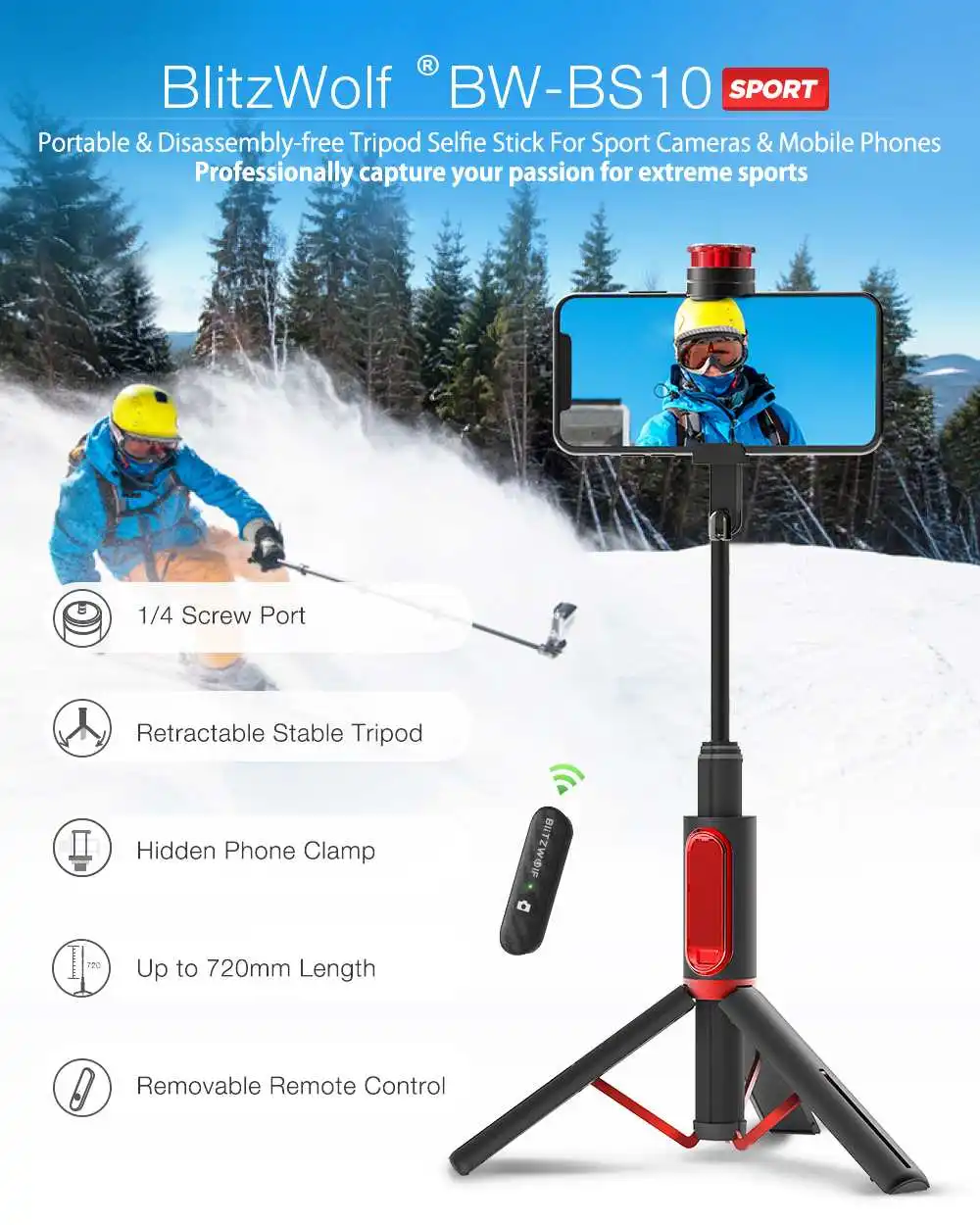 Best . (35% Off) Buy BlitzWolf BW BS10 Sport All In One Portable bluetooth Tripod Selfie Stick Monopod with 1 4 Screw Port for Gopro 7 6 5 Sports Cheap Online.