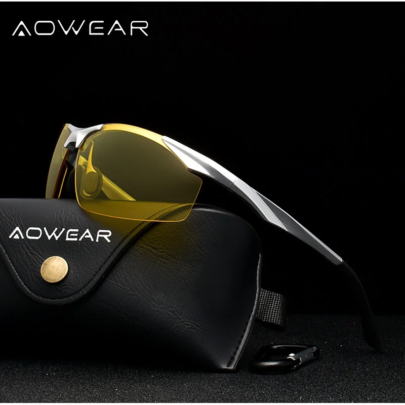 Special Offer AOWEAR HD Night Driving Glasses Men Polarized Night Vision Sunglasses Men s Aluminum Yellow Sun Glassses for Driver Gafas Discount 50% Today!
