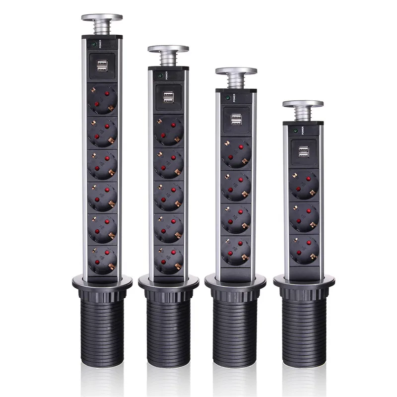 Best . (50% Off) Buy NEW 3 4 5 6 power EU Plug Kitchen Table Electrical Socket Power 1 Led+2 charge USB Aluminum Shelf Silver Black Cap Price Online.