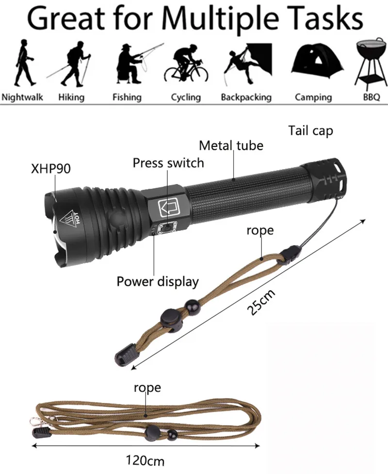Special Offer Most Powerful XHP70.2 LED Flashlight XLamp Zoom Torch USB Rechargeable Tactical Light 18650 or 26650 Camping Hunting Lamp Discount 89% Today!