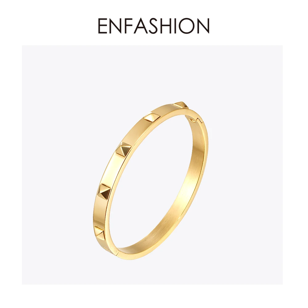 Special Offer Enfashion Pyramid Spikes Bracelet Manchette Gold Color Stainless Steel Bracelet For Women Cuff Bracelets Bangles Pulseiras Discount 20% Today!