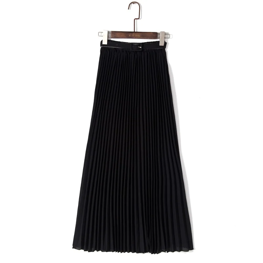 Special Offer Anasunmoon Spring Bohemian Pleated Maxi Skirts Womens Summer Solid Color High Waist Chiffon Long Skirt Tutu Elegant Ladies Black Discount 30% Today!