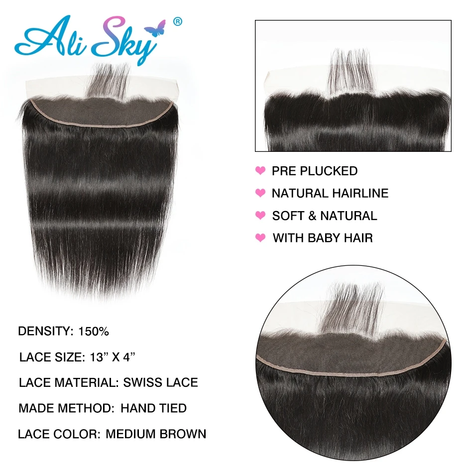 Special Offer 3 Bundles Brazilian Straight Hair with Pre Plucked Lace Frontal 13X4 Ear to Ear Free Part With Baby Hair Ali Sky Remy Hair Discount 45% Today!
