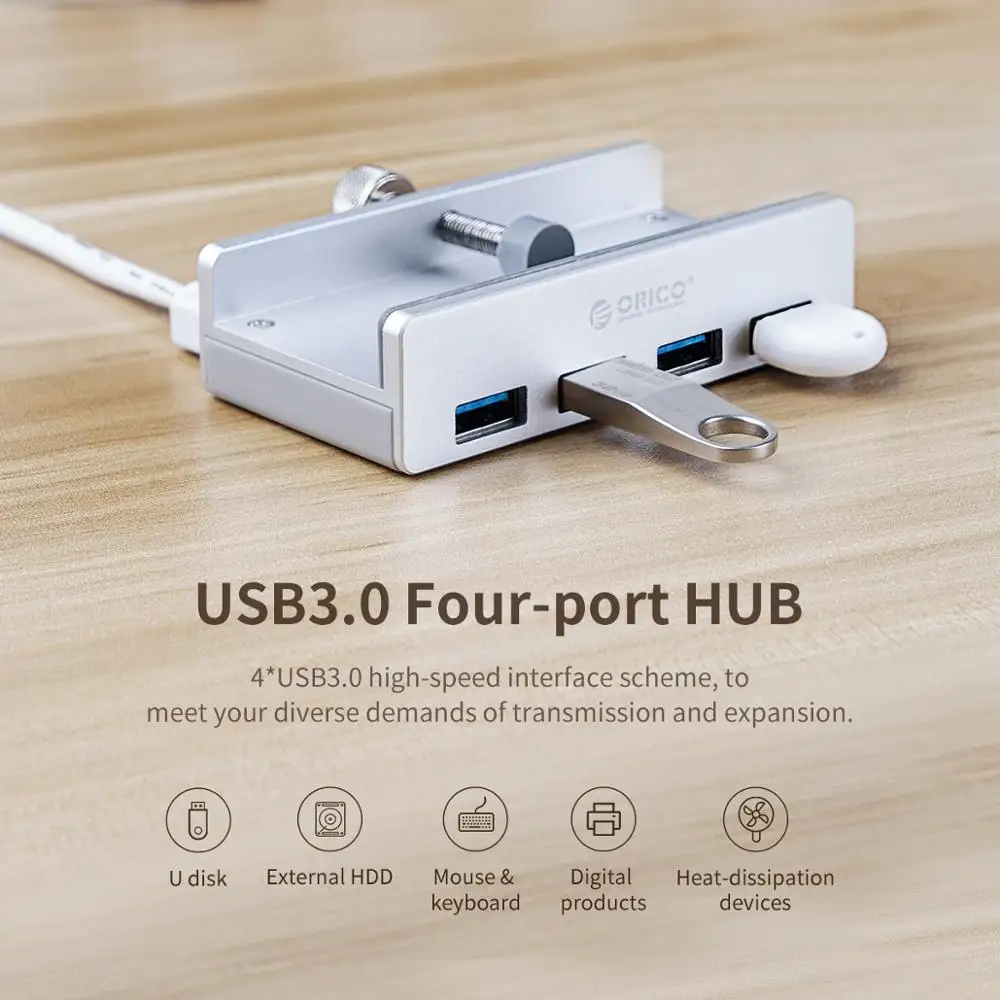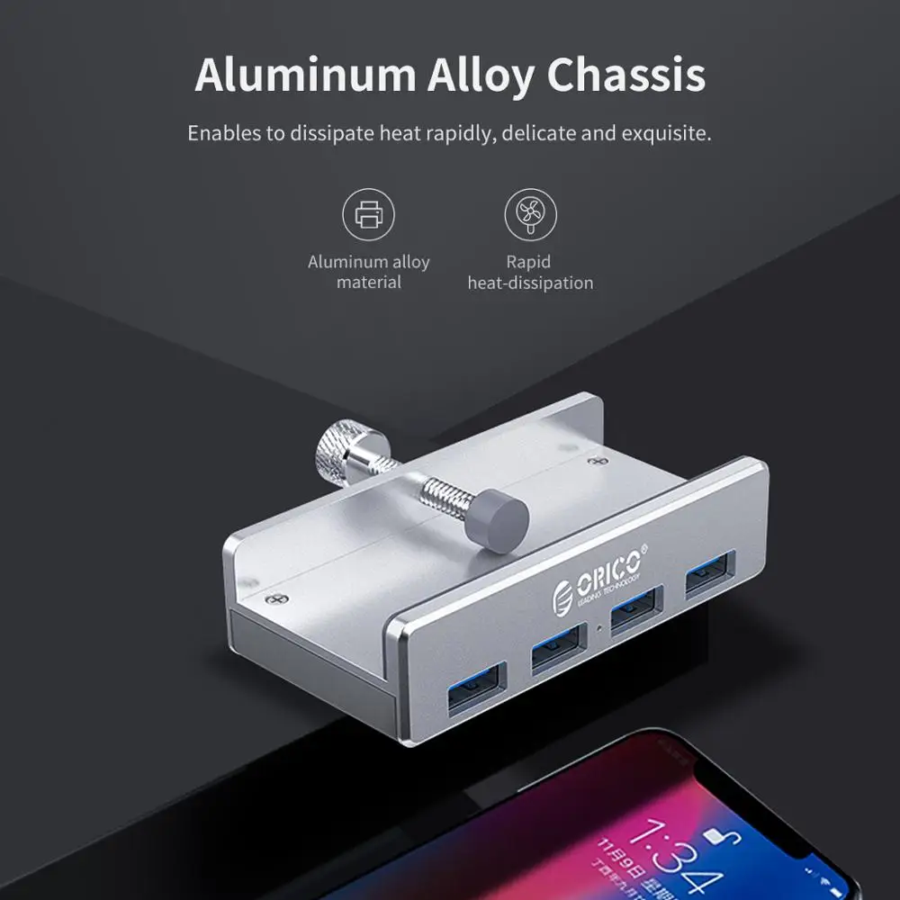Best . (45% Off) Buy ORICO Aluminum 4 Ports USB 3.0 Clip HUB with Power Supply High Speed 5GBPS Data Transmission for MAC OS PC (MH4PU P) Cheap Online.
