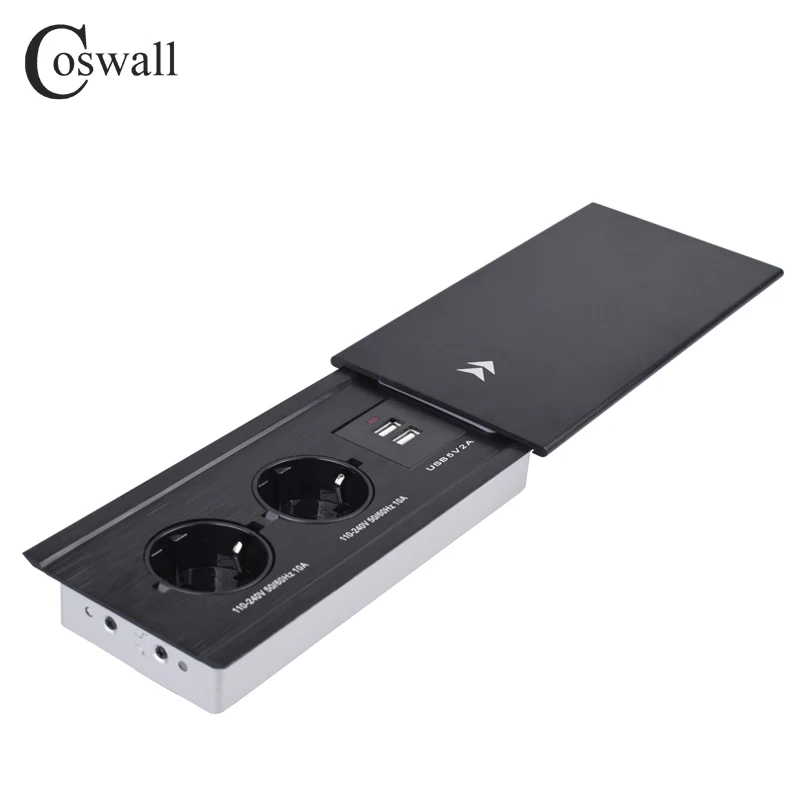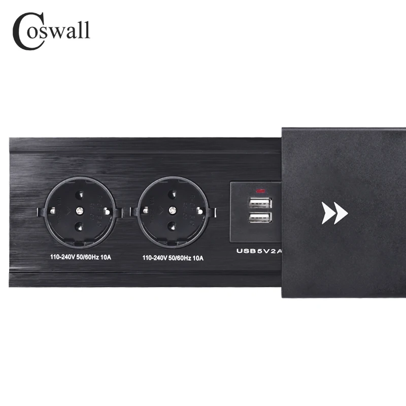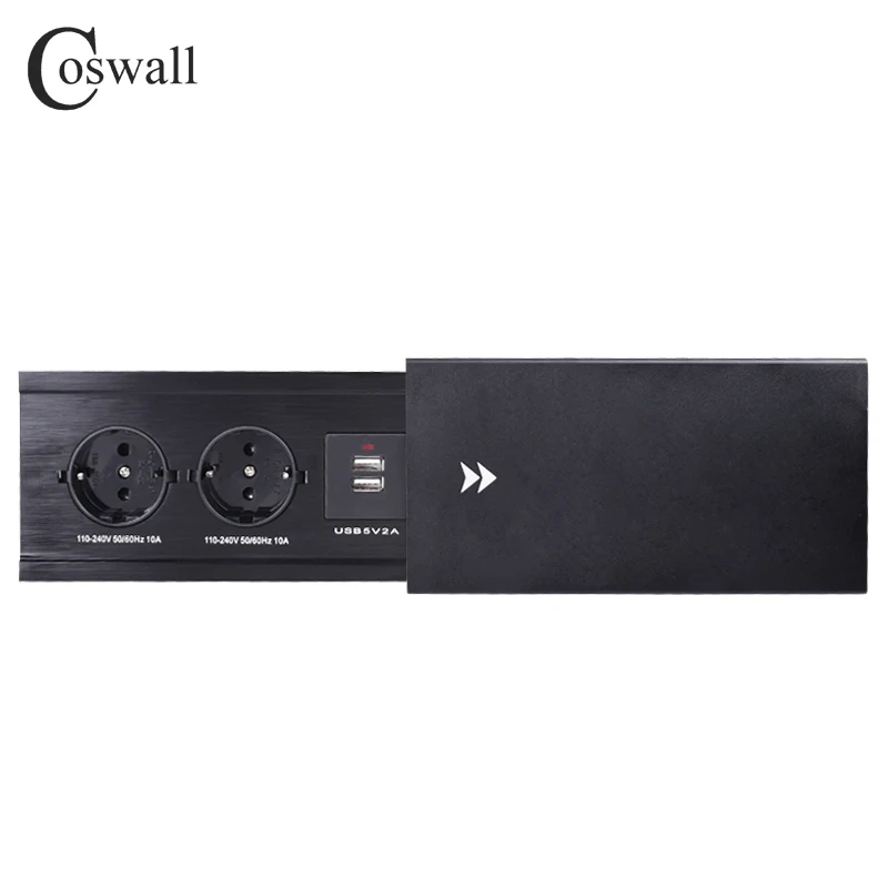 Special Offer COSWALL ALL Aluminum Alloy Plate Slide Type Hidden 2 Power EU Socket Dual USB Charge Port Office Table Outlet Matte Black Cover Discount 47% Today!