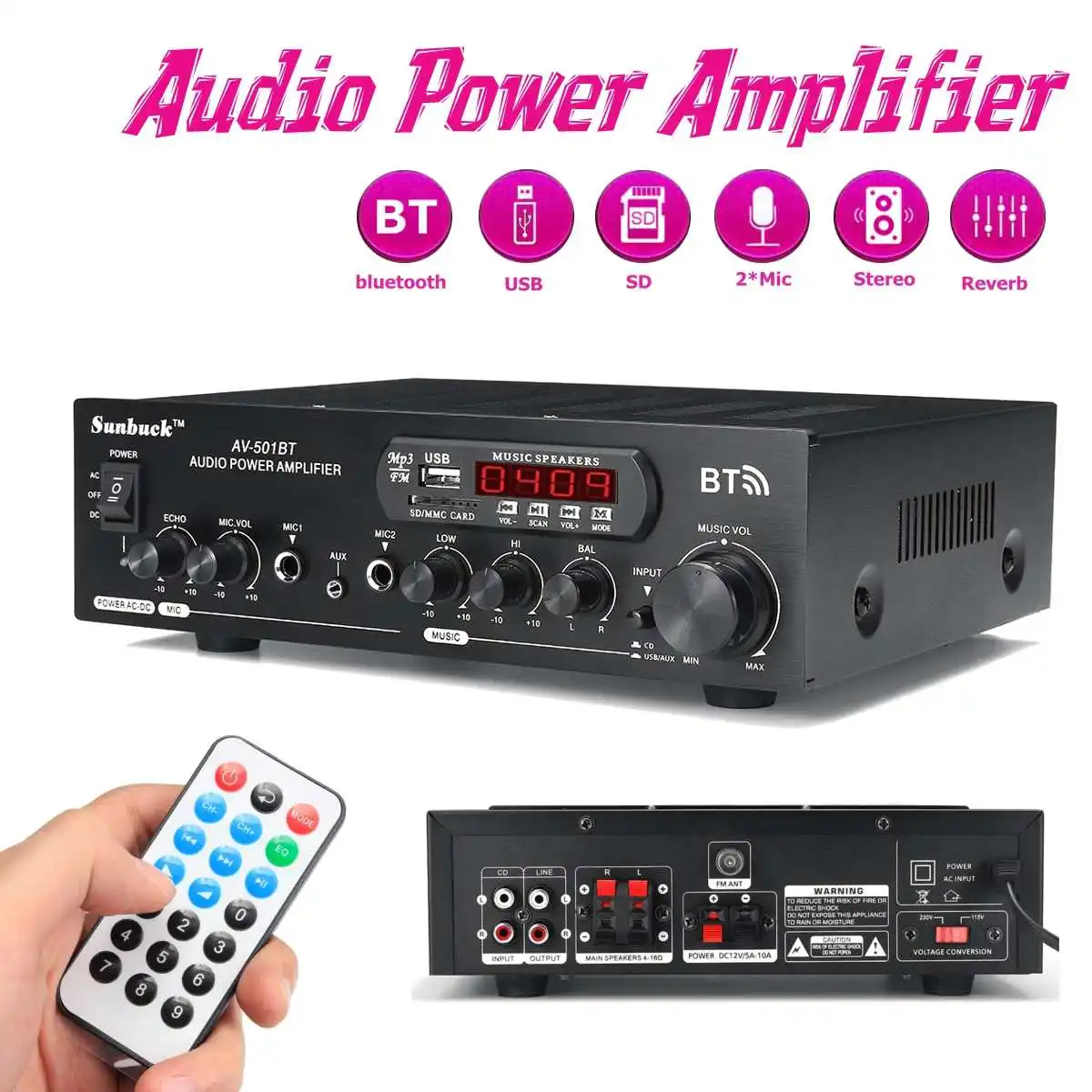 Best . (49% Off) Buy bluetooth Audio Power Amplifier 1200W 110V 220V DC 12V AUX input 2.0 hifi speaker 4 microphone FM USB SD 2 x Mic input Cheap Online.