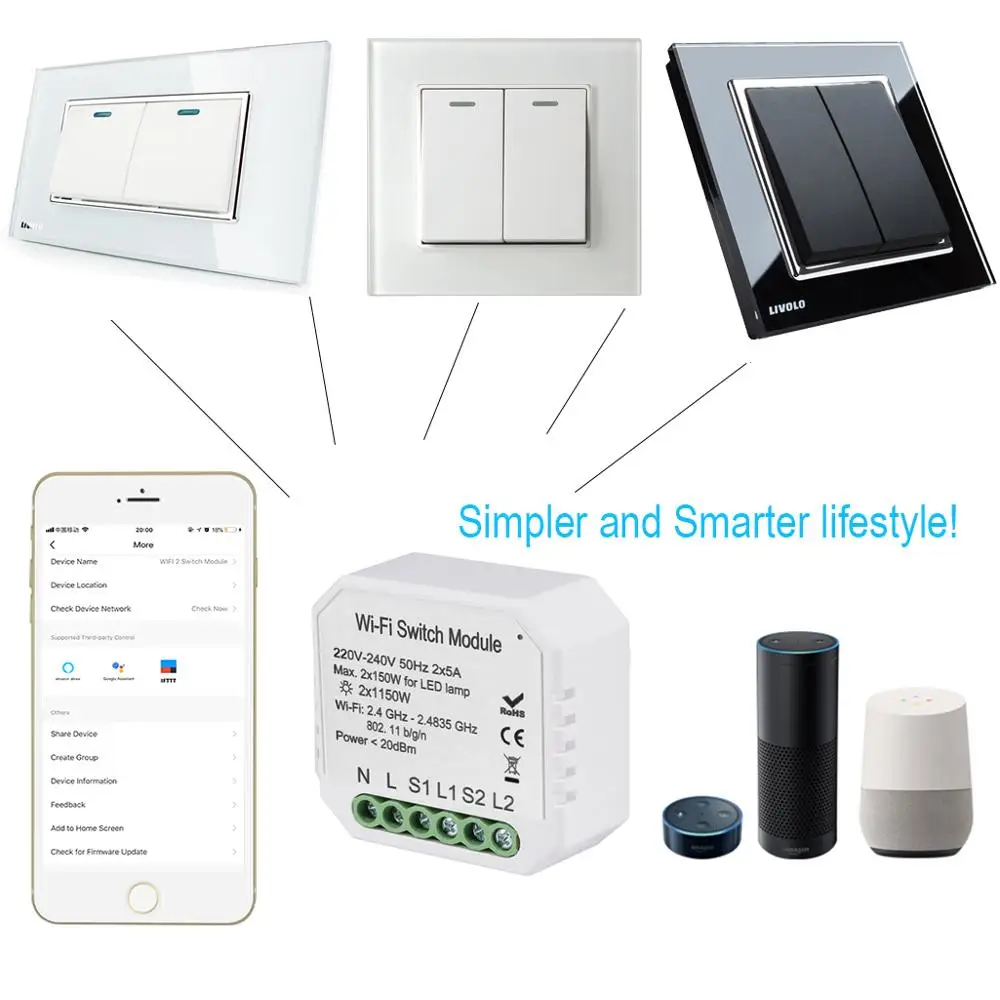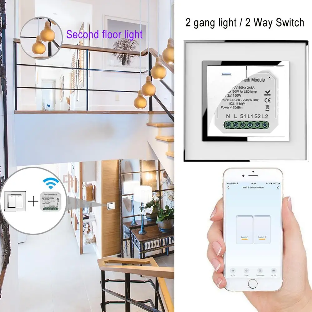 Best . (49% Off) Buy Wifi light switch 2 way 2 gang controller 10A 2300W Smart Switch Module timer control Compatible Alexa Google IFTTT smart life Price Online.