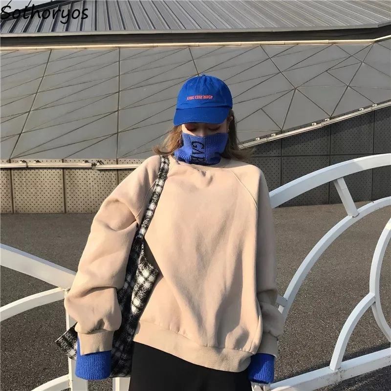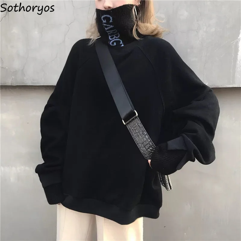 Special Offer Hoodies Women Turtleneck Plus Velvet Warm Sweatshirt Student Thicker Loose Casual All match Harajuku Long Sleeve Womens Simple Discount 5% Today!