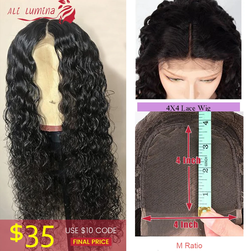 Special Offer Water Wave Human Hair Lace Wig Peruvian Remy Hair 4X4 Lace Closure Wig With Pre Plucked Hairline 10 30 Inches Discount 51% Today!