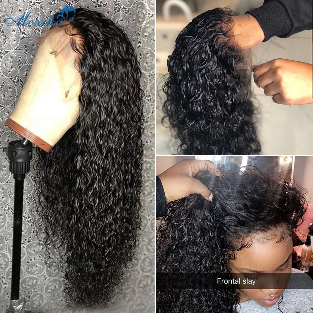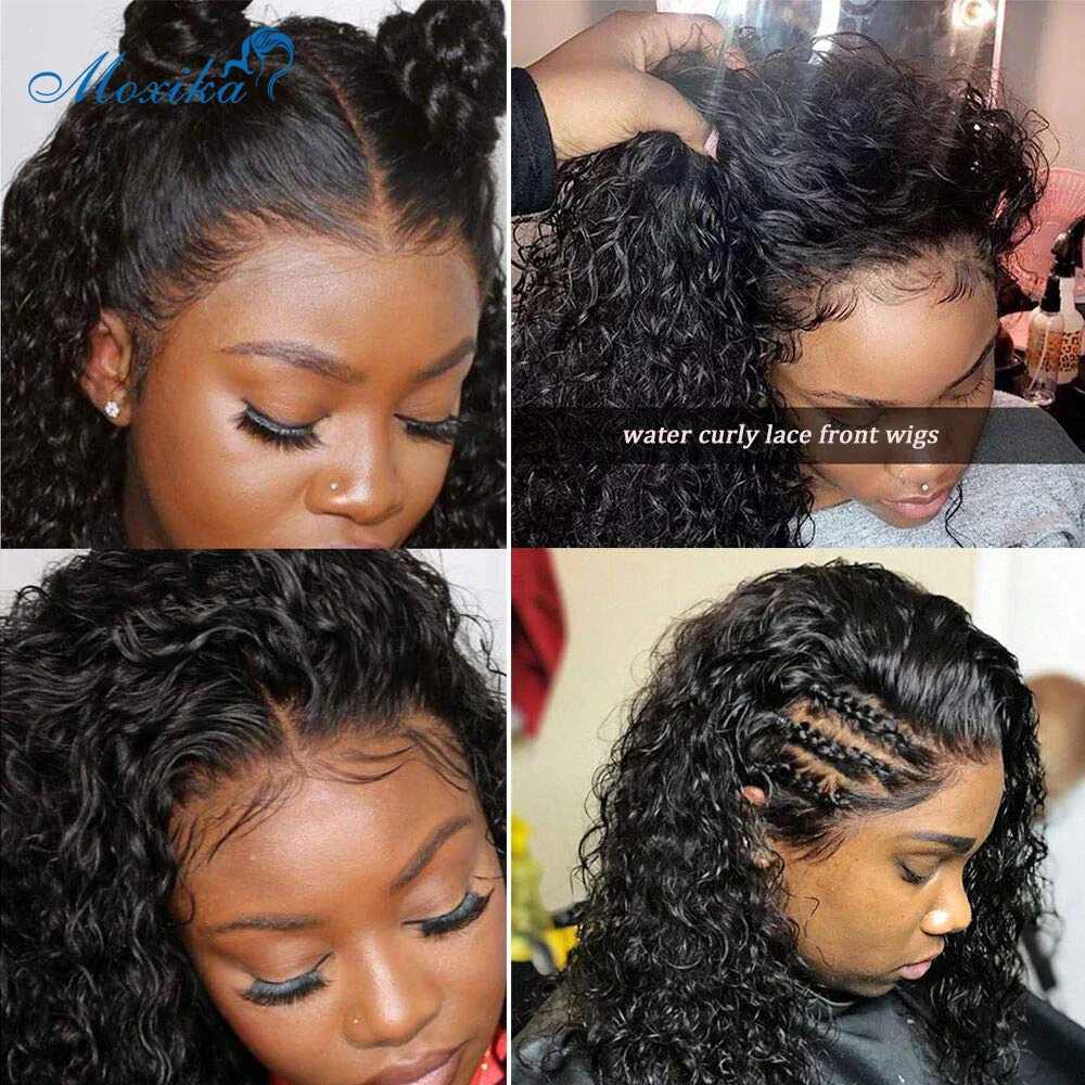 Special Offer Moxika Water Wave Lace Front Wigs Pre Plucked 150% Density Peruvian Curly Lace Front Wig Human Hair Wigs Remy Lace Frontal Wig Discount 52% Today!