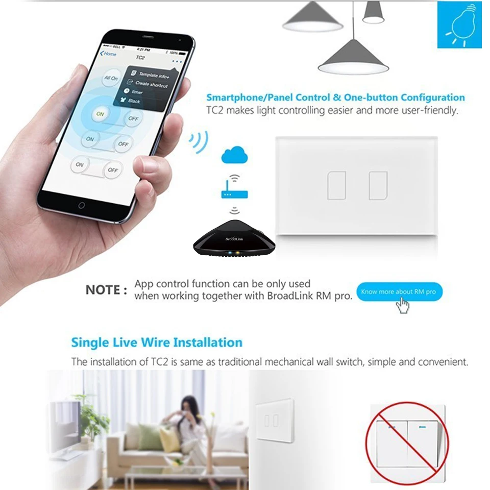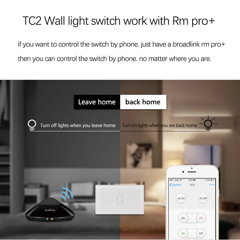 Special Offer 2019 Broadlink TC2 US AU version 1 2 3 Gang WiFi Home Automation Smart Remote Control Led Light Switche Touch Panel via RM Pro+ Discount 10% Today!