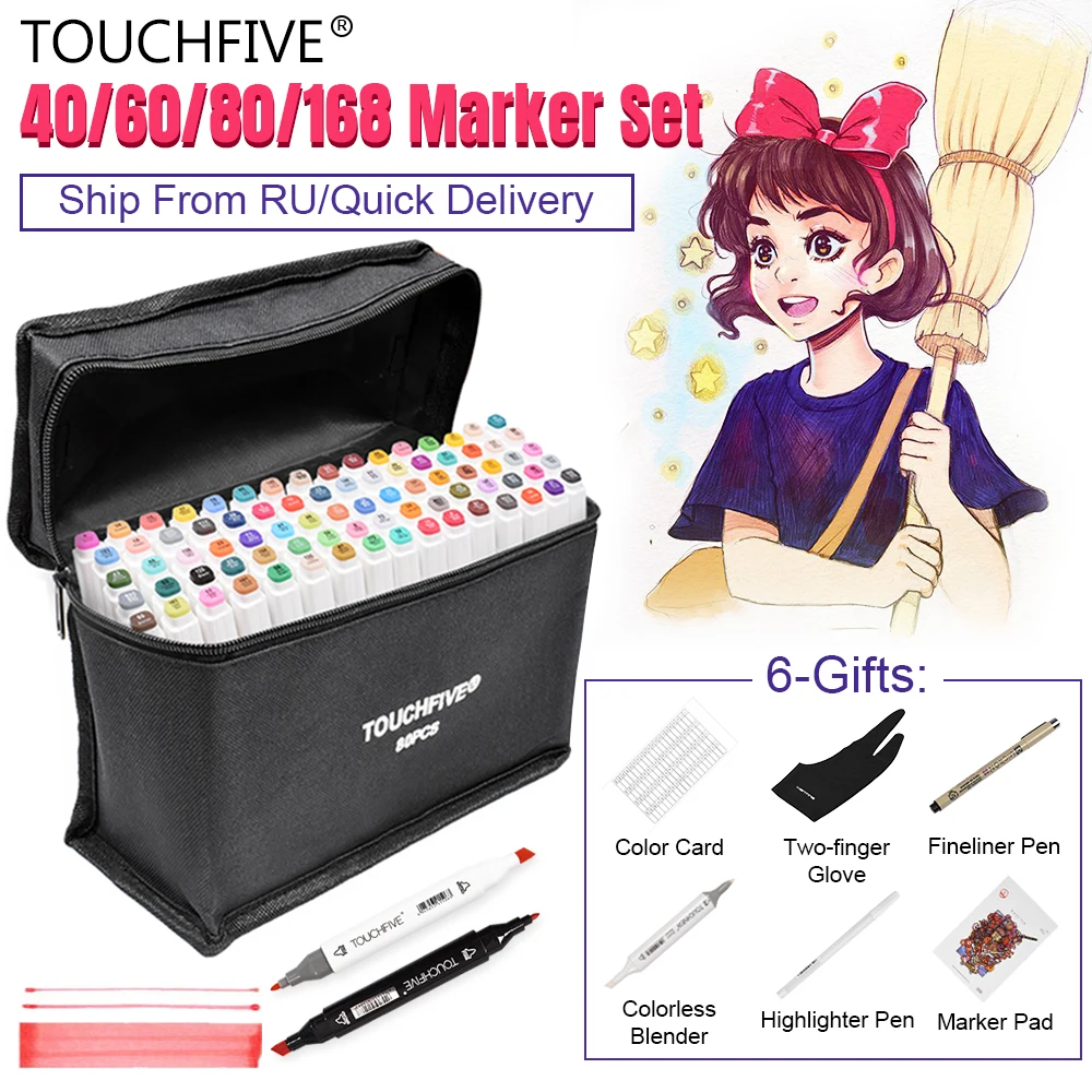 Special Offer Touchfive Markers Pen Set 40 60 80 168 Color Animation Sketch Marker Dual Head Drawing Art Brush Pens Alcohol Based with 6 Gifts Discount 10% Today!