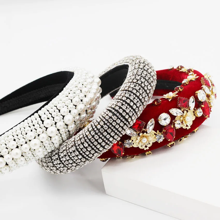 Special Offer New European and American Baroque heavy industry fashion wild rhinestone pearl metal flower temperament luxury headband 885 Discount 11% Today!