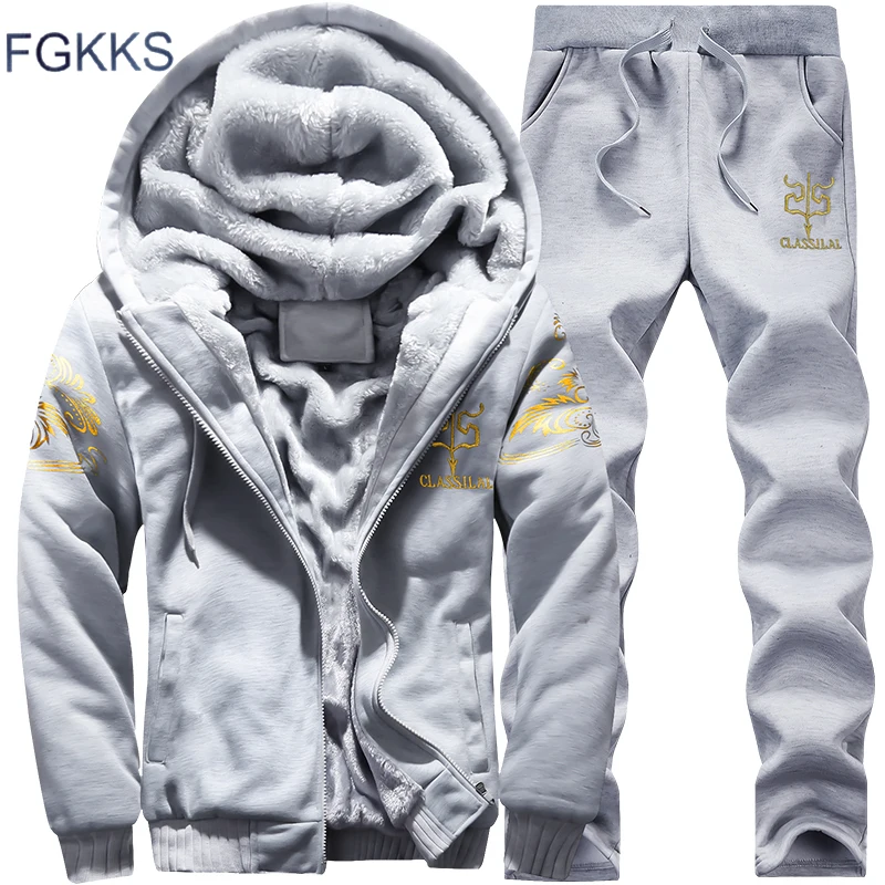Special Offer FGKKS Men Casual Tracksuit Set Winter Two Piece Sets All Polyester Inner Thicken Thick Hooded 2PC Jacket+Pants Sporting Suit Men Discount 40% Today!