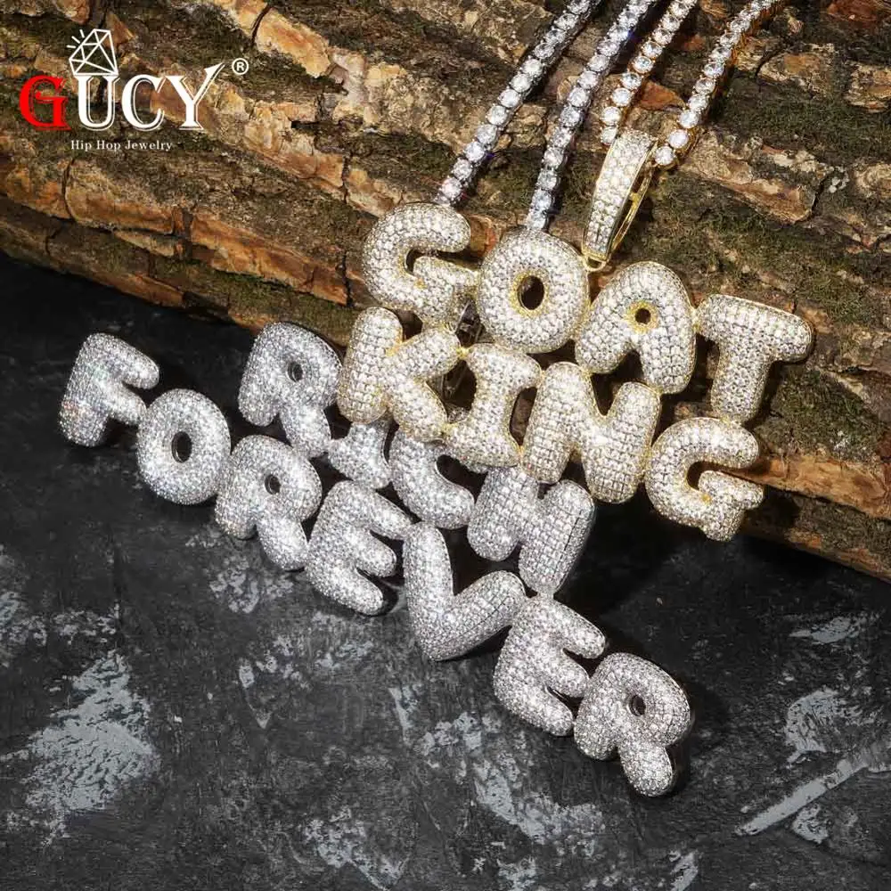 Special Offer GUCY A Z Custom Name Bubble Letters Pendant Necklace Charm Men s CZ Hip Hop Jewelry With Gold Silver Tennis Chain Discount 40% Today!
