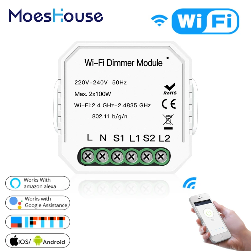 Best . (43% Off) Buy 2 Gang DIY WiFi Smart 2 Way Light LED Dimmer Module Switch Smart Life Tuya APP Remote Control Work with Alexa Google Home Price Online.
