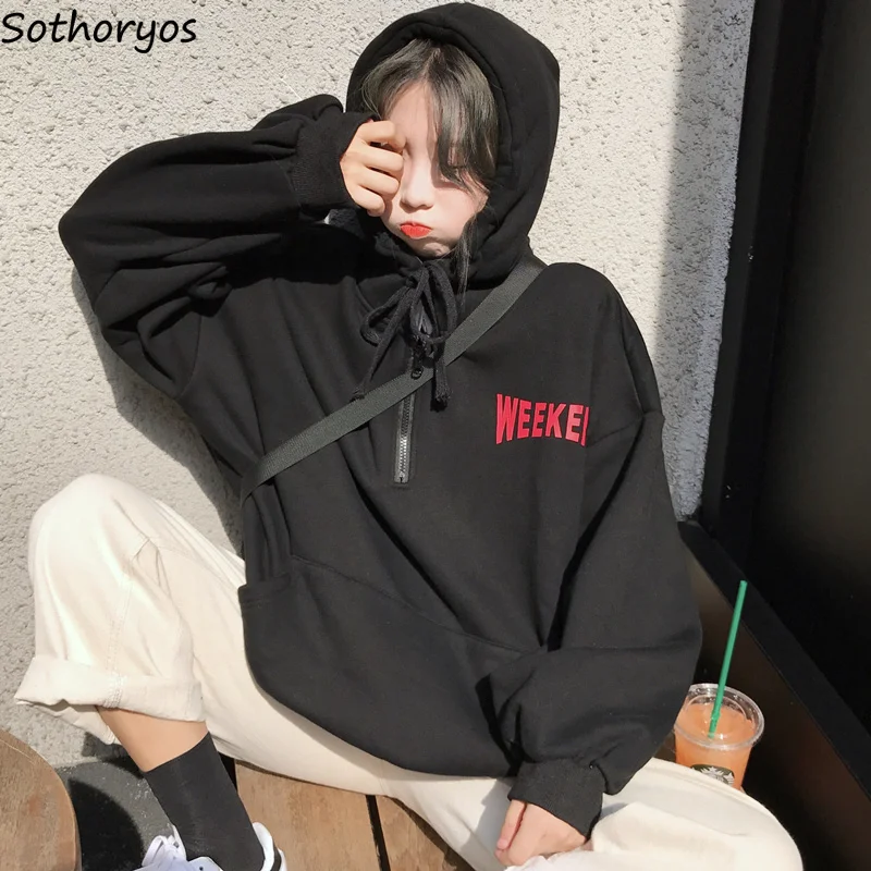 Best . (5% Off) Buy Hoodies Women Letter Printed Loose Hooded Trendy Pockets Plus Velvet Sweatshirts Womens Korean Style Harajuku All match Chic Price Online.