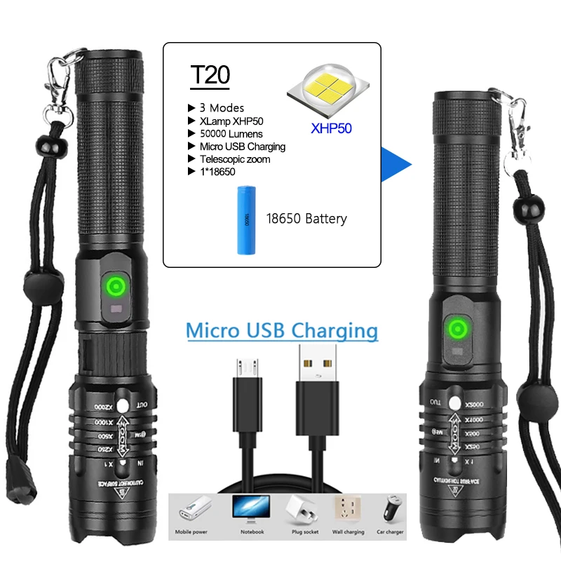 Best . (89% Off) Buy POCKETMAN 50000 lumens flashlight xhp50.2 most powerful flashlight 18650 usb torch xhp50 lantern 18650 hunting lamp hand light Cheap Online.
