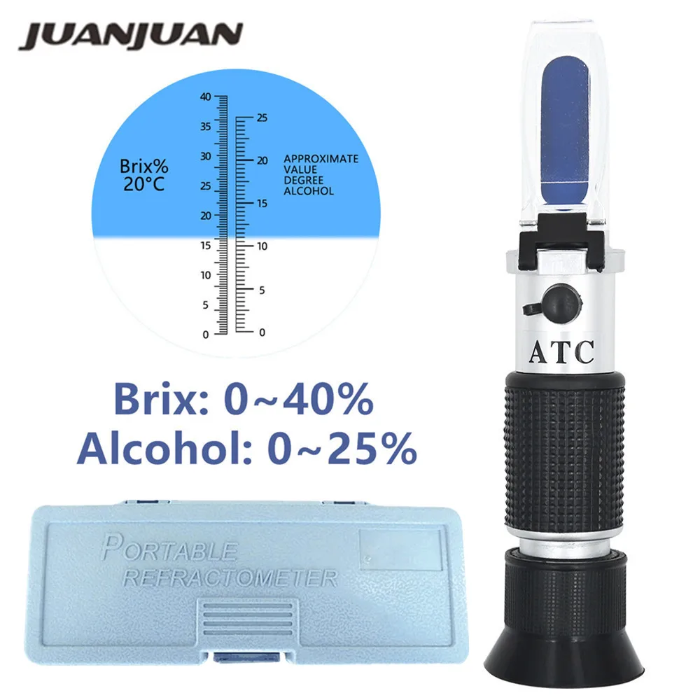 Special Offer With retial box 0~40% Brix 0~25% Alcohol Refractometer Wort Specific Gravity Refractometer Wine Sugar Test Tool 25% off Discount 32% Today!