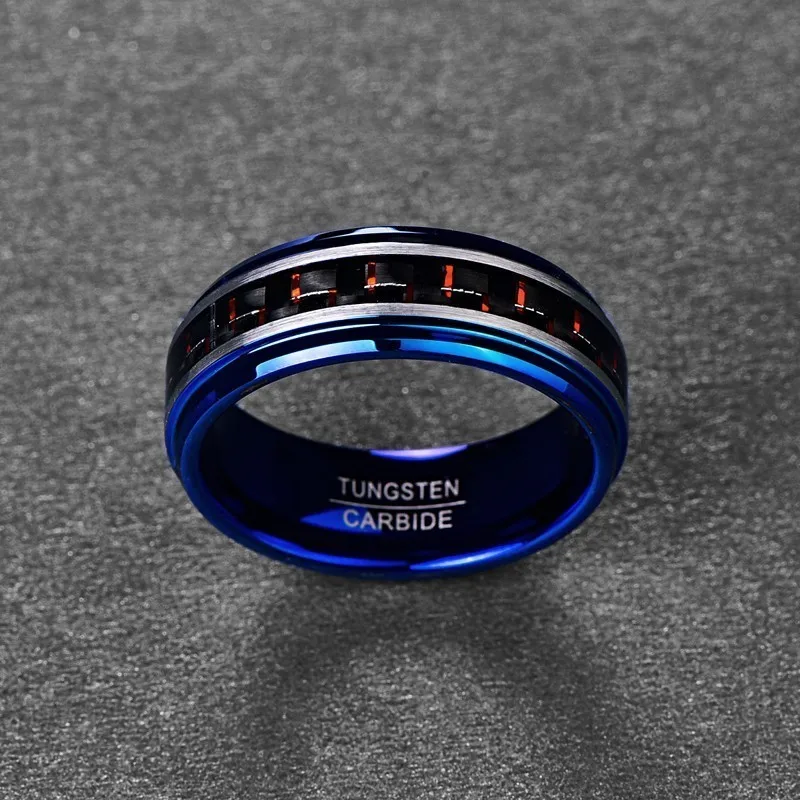 Special Offer Wedding Bands Engagement Ring For Woman Man 8MM Inlaid Red Carbon Fiber Blue Tungsten Steel Ring Free Shipping Size 7 12 Discount 35% Today!