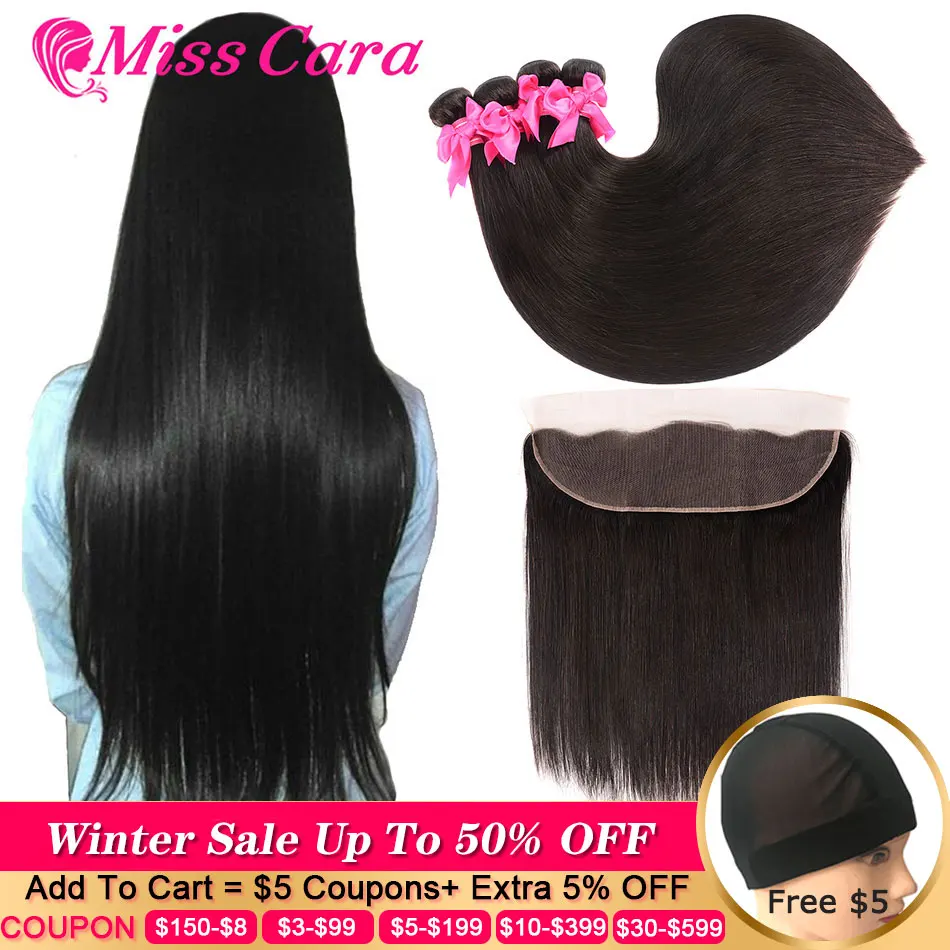 Special Offer Peruvian Straight Hair Bundles With Frontal Miss Cara 100% Remy Human Hair 3 4 Bundles With Closure 13*4 Frontal With Bundles Discount 50% Today!