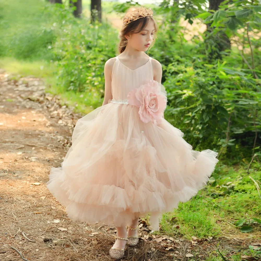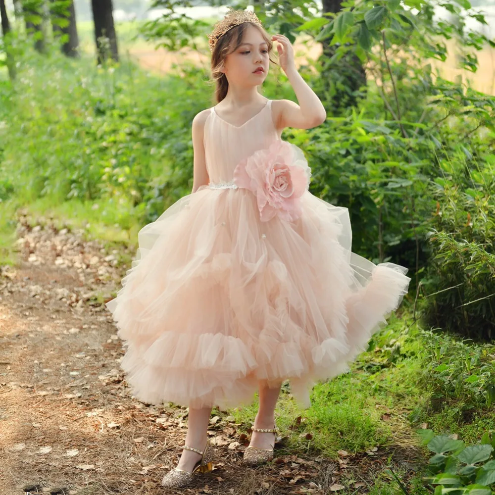 Special Offer Pink Princess Ball Gowns Wedding Tutu Dresses for Girls Party Flower Girl Dresses Sleeveless Prom 2 13 Years Discount 9% Today!