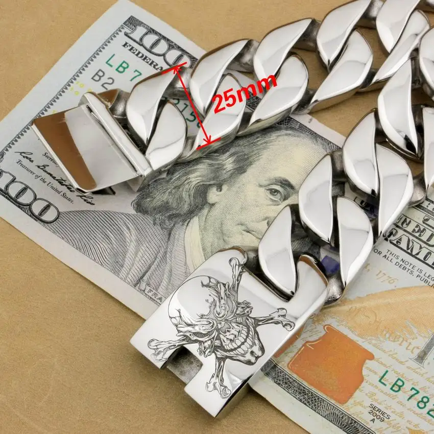 Special Offer LINSION 6 Lengths Deep Engraved Huge Heavy 316L Stainless Steel Pirate Skull Mens Biker Rock Punk Curb Link Bracelet 5D101 Discount 0% Today!