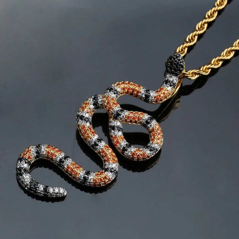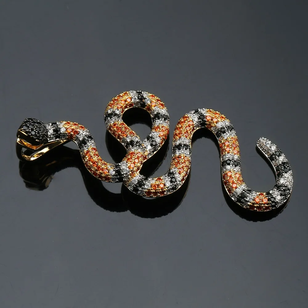 Special Offer New Iced Out Coral Snake Pendant Snake Pendant Necklace Mens Copper Colourful Zirconia Gold Color Hip Hop Fashion Jewelry Gift Discount 25% Today!