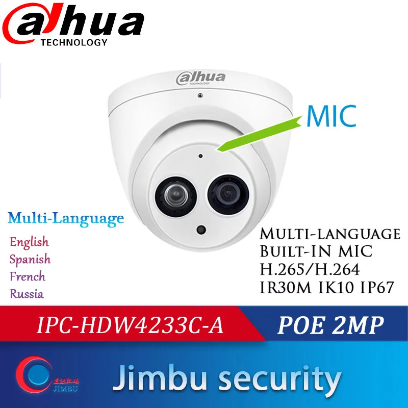 Special Offer Dahua starlight POE 2MP IPC HDW4233C A Sony 1080P dome IP camera built mic H.265 IR30m 3DNR Waterproof Russia languag hot model Discount 30% Today!