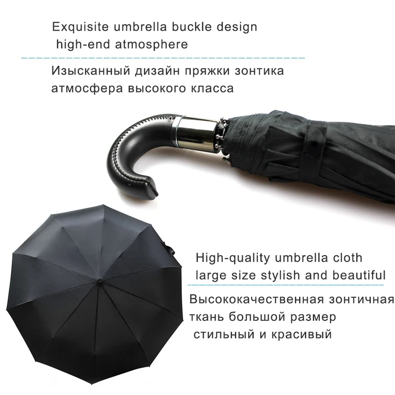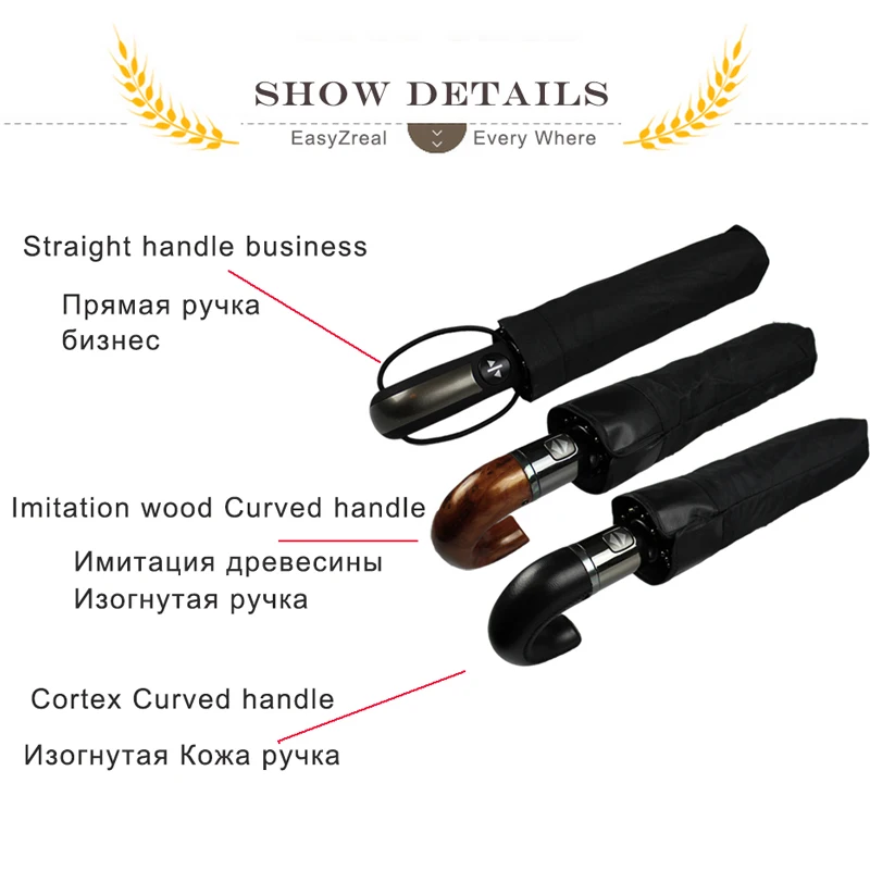 Best . (32% Off) Buy EasyZreal Leather Curved Handle men Automatic business Umbrella Male Windproof Black Big auto Umbrellas parasol Rain paraguas Price Online.