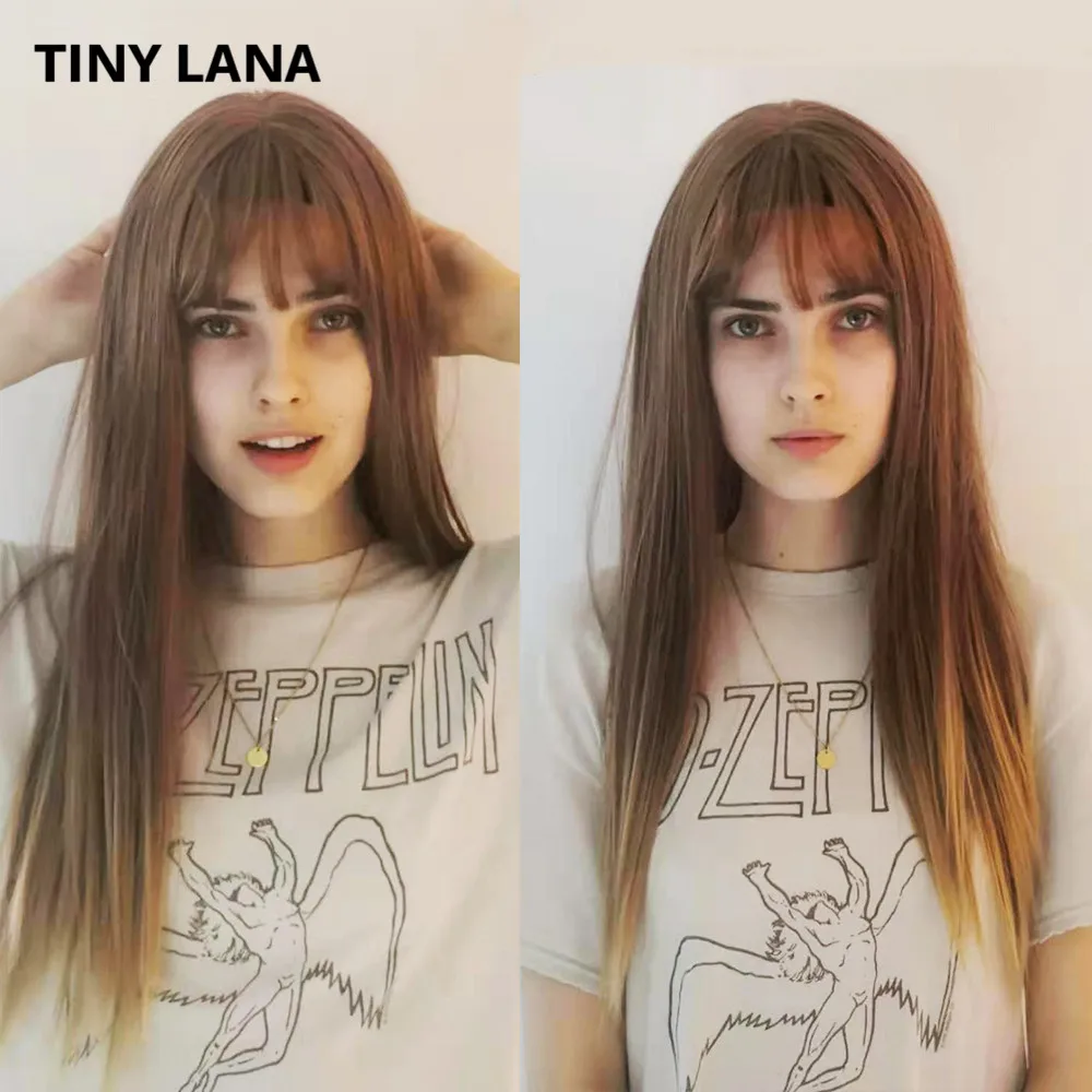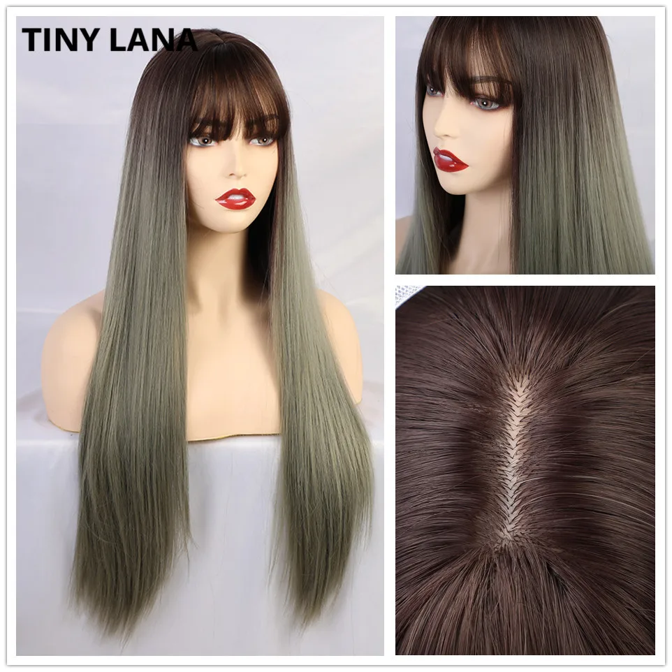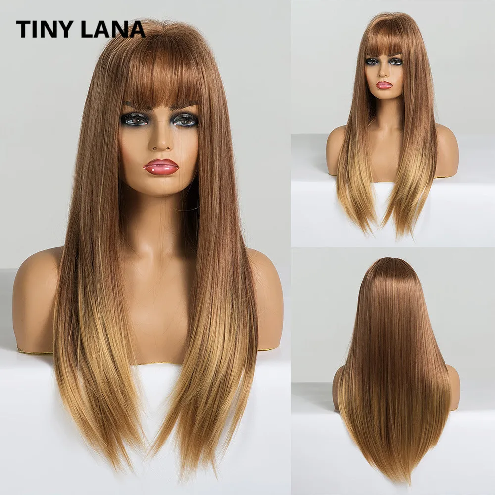 Special Offer TINY LANA Long Stright Ombre Womens Wigs with Bangs Heat Resistant Synthetic Straight Wigs for Women African American Fake Hair Discount 40% Today!