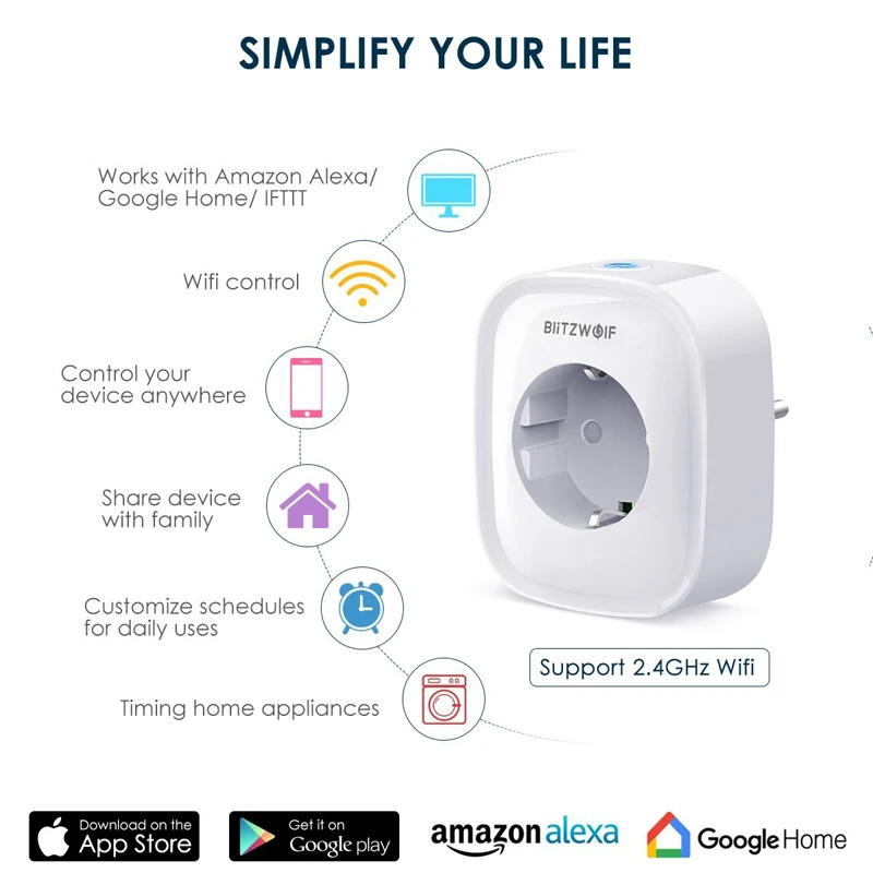 Special Offer BlitzWolf BW SHP2 WIFI Smart Socket 220V 16A Remote Control Smart Timing Switch EU Plug Work For Amazon Alexa Google Assistant Discount 42% Today!