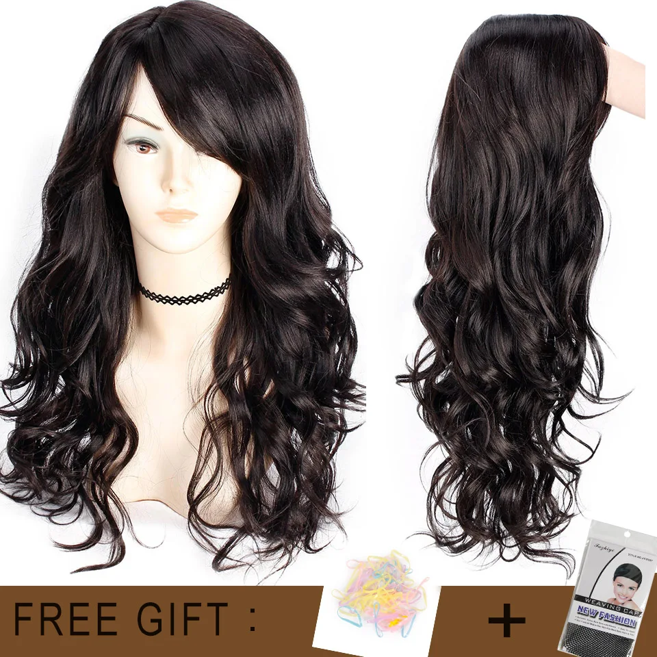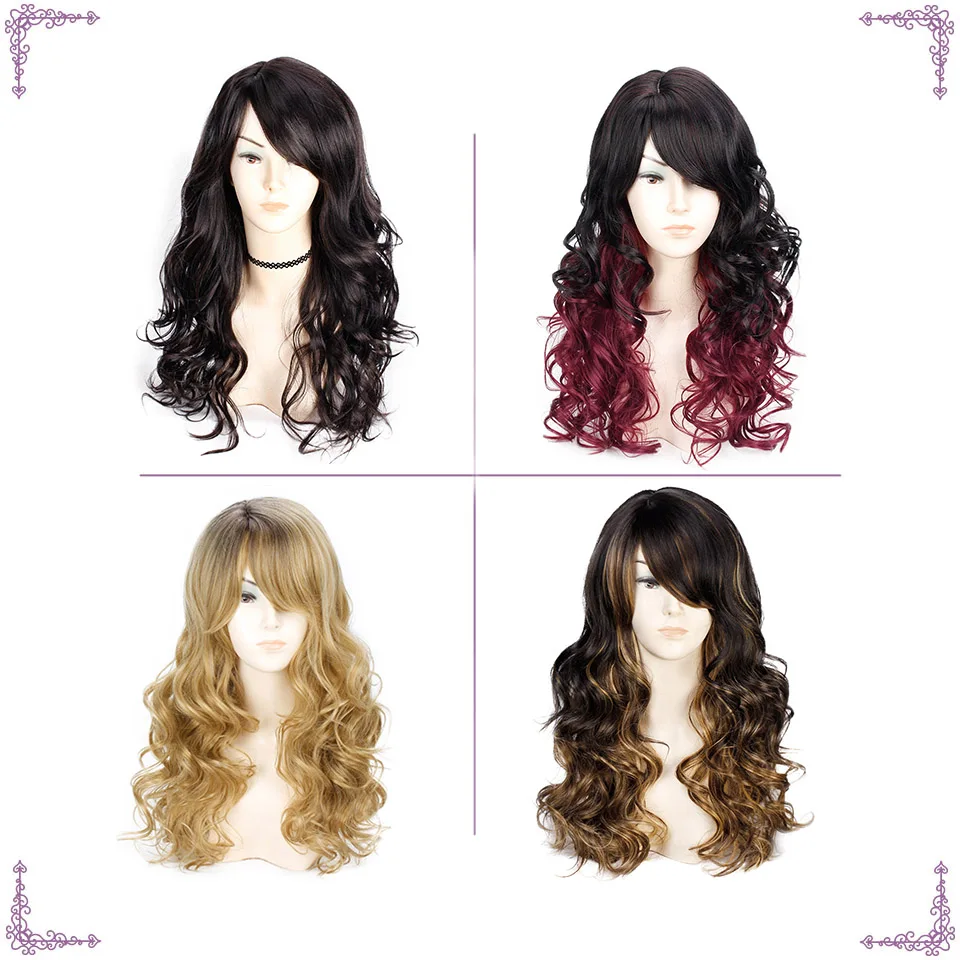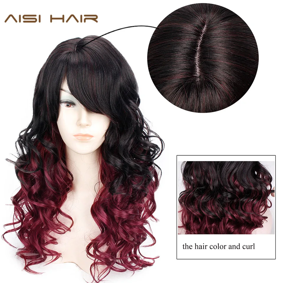 Special Offer Long Lavy Black Red Hair Mix Color Women Wigs Heat Resistant Synthetic wigs with bangs for Women African American Natural Hair Discount 42% Today!
