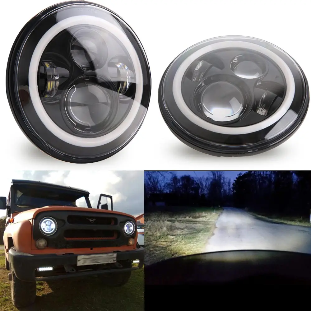 Best . (50% Off) Buy 2Psc 7 Inch LED Headlight H4 Hi Lo With Halo Angel Eyes For Lada 4x4 urban Niva Jeep JK Land rover defender Hummer Price Online.