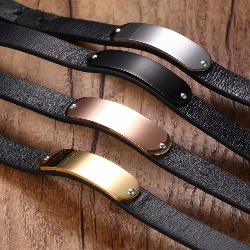Special Offer Vnox Mens Black Genuine Leather Bracelet with Glossy Stainless Steel Tag Casual Male Jewelry Discount 50% Today!