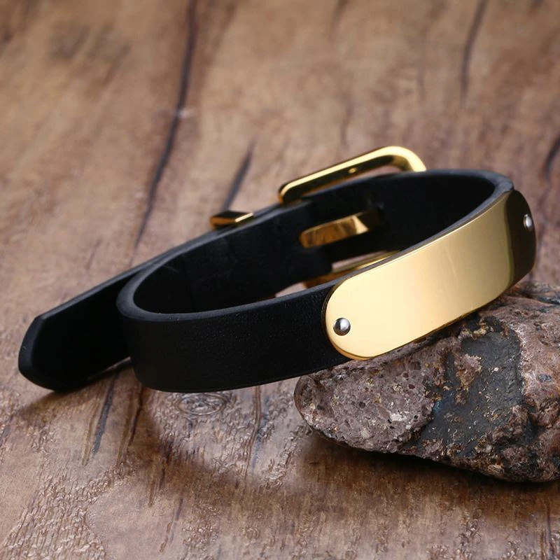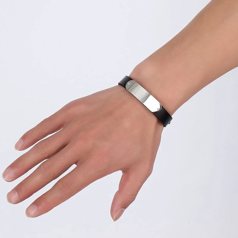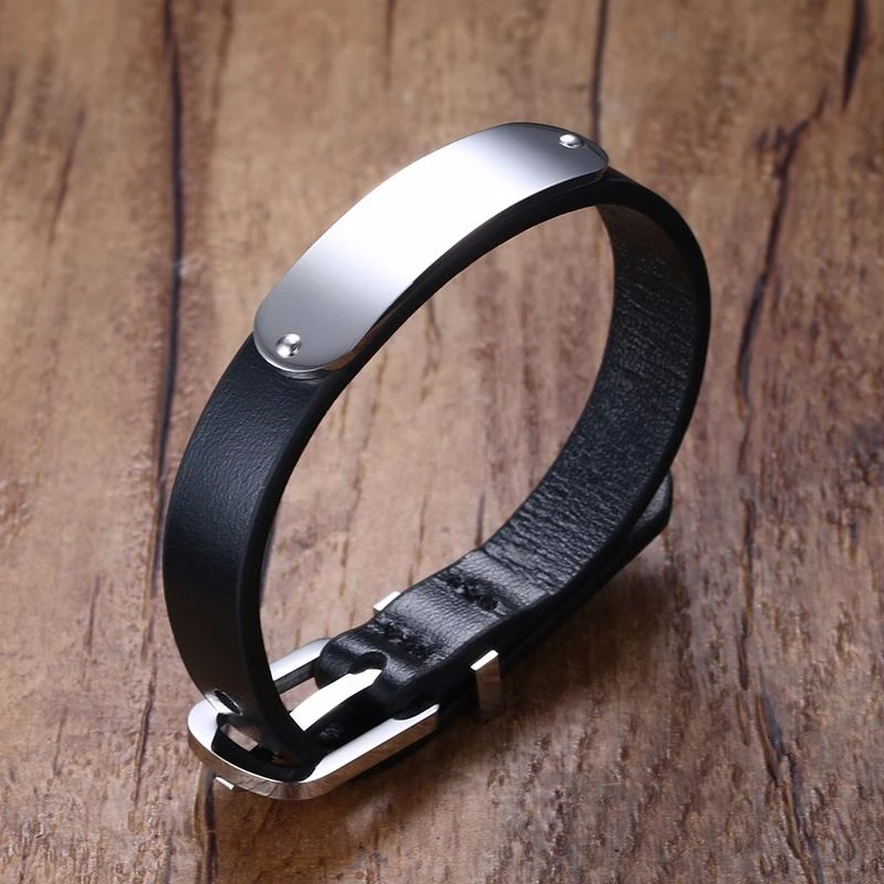 Best . (50% Off) Buy Vnox Mens Black Genuine Leather Bracelet with Glossy Stainless Steel Tag Casual Male Jewelry Cheap Online.