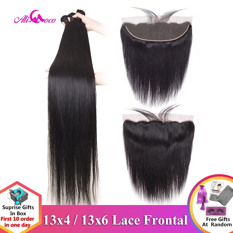 Special Offer Ali Coco 28 30 32 34 40 Inch Brazilian Straight Bundles With Lace Frontal Human Hair Bundles With Frontal Remy Hair Extensions Discount 52% Today!